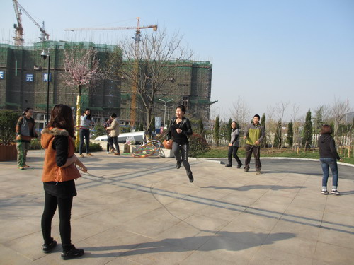 随着哨声的响起,,,,,,,,各人就像儿时课间运动一样起劲自动地来到办公楼前广场荟萃,,,,,,,,让在电脑前劳累了近一天的身体获得舒展,,,,,,,,踢毽子、跳绳、转呼啦圈、打羽毛球,,,,,,,,运动形式多样,,,,,,,,运动气氛热闹特殊,,,,,,,,各人在欢快的气氛里一起运动,,,,,,,,即增进了情绪,,,,,,,,又磨炼了身体。。。。。。。