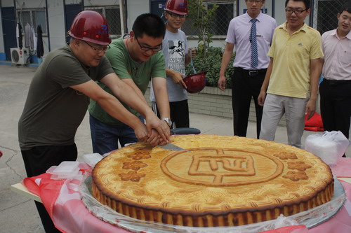 中秋节当天,,,,,,,,超等月饼泛起在项目建设工地现场。。。。。。。。工友们见到唐冶公司营销部来送云云巨型的月饼既感应新颖同时又十分欢喜。。。。。。。。项目工地认真人代表全体工友对PA视讯(中国区)官网-PlayAce集团的这一温暖行为体现谢谢,,,,,,,,并允许一定不辜负PA视讯(中国区)官网-PlayAce集团的信托和厚爱,,,,,,,,保质保量的迅速推进工程希望,,,,,,,,争取早日让PA视讯(中国区)官网-PlayAce·唐郡项目的业主住进自己的新屋子。。。。。。。。