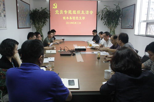 2014年9月11日,,,,,,,山东PA视讯(中国区)官网-PlayAce党支部专题组织生涯会在集团圆会室召开,,,,,,,控股集团总部12名党员参会,,,,,,,舜玉街道效劳处党工委张文辉副书记、党办齐巍岩主任出席聚会并监视指导。。。。。。