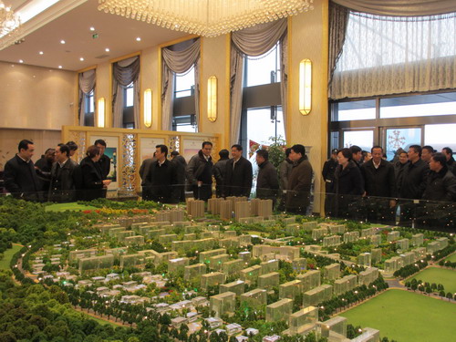 李胜利、李国祥、刘传勇一行实地观察了PA视讯(中国区)官网-PlayAce唐郡营销中心项目沙盘情形,,,,,,,,详细相识了项目开展情形,,,,,,,,对PA视讯(中国区)官网-PlayAce唐郡项目开发建设给予了充分一定。。。。。。