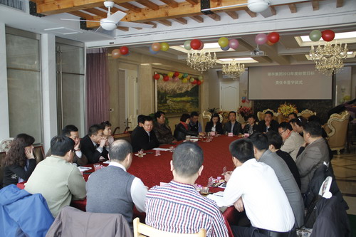 为了进一步强化目的治理,,,,,,,,更好地落实谋划责任,,,,,,,, 2013年3月31日,,,,,,,,PA视讯(中国区)官网-PlayAce集团在PA视讯(中国区)官网-PlayAce花园节能展示中心举行2013年度谋划目的责任书签字仪式。。。。。仪式由PA视讯(中国区)官网-PlayAce集团行政总监马筱青主持,,,,,,,,集团公司总监以上职员、事业部向导班子成员、各公司总司理共计35人出席了本次签字仪式。。。。。