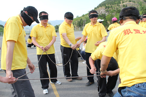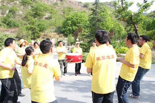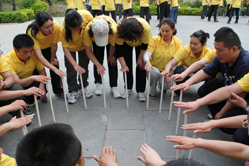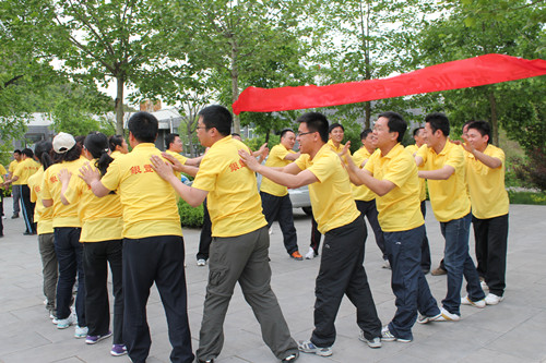拓展训练时代,,,,,各队划分举行了“空中单杠”、“天梯”、“断桥”、“高空相依” “瞽者方阵”、“团队战鼓”、“圣塔”、“背摔”“蛟龙出海”等拓展项目。。。。。。。。各队成员充分验展自己最大的潜能,,,,,尤其在高空类项目中敢于挑战自我、逾越自我,,,,,配合团队配合完成了使命。。。。。。。。在整体角逐中,,,,,“团队战鼓”的效果突破了拓展训练营内坚持五年的纪录,,,,,颠球数目高达1211个。。。。。。。。