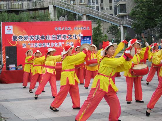锣鼓队的姨妈在业主的掌声中倾力演出