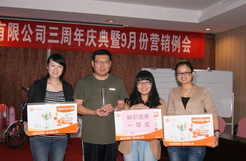 会上,,,,,公司总司理魏西京为逾额完成月度销售使命的职员以及9月份事情突出的优异员工划分揭晓了现金奖励,,,,,将营销例会的气氛推向热潮,,,,,同时9月份的事情总结及10月份的使命下发也使在座列位营销职员充满斗志。。。。。。。随后,,,,,“我的干细胞”主题演讲角逐以及知识竞赛在员工热情的掌声中圆满竣事。。。。。。。