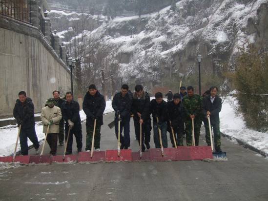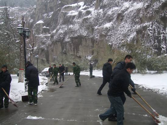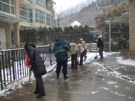 扫除庭院积雪,,,,,,,,利便业主出行。。。。。。。。