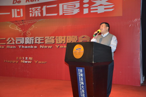 晚会上,,,,,,,,德仁公司总司理夏培斌先生首先致接待辞,,,,,,,,谢谢所有与会嘉宾和向导对公司已往一年来的支持和资助。。。。。同时,,,,,,,,他体现在新的一年里,,,,,,,,德仁公司愿同所有厂商携手并进,,,,,,,,再创绚烂!