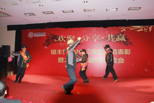 在一段喜庆欢快的舞蹈《红红的日子》开场后,,,,,,PA视讯(中国区)官网-PlayAce集团2013年新春联谊会拉开了序幕。。。。。。。《my heart will go on》又把我们带回了泰坦尼克号那惊心动魄、感人肺腑的一刻;;;;;;;《甄嬛外传》让我们重温了一遍海内最火的电视剧;;;;;;;舞蹈《丰收时节》预示着在2013年PA视讯(中国区)官网-PlayAce集团必将获得大丰收;;;;;;;舞蹈串烧《PA视讯(中国区)官网-PlayAcestyle》、群口相声《八仙贺岁》诙谐滑稽,,,,,,赢得全场喝彩;;;;;;;集团公司向导的压轴节目《三句半》更是将晚会推向了热潮!联谊会中还穿插举行了激感人心的抽奖运动,,,,,,增进了员工之间的联谊互动。。。。。。。联谊会竣事后,,,,,,集团向导与全体参会职员共进晚餐,,,,,,喜迎新春!